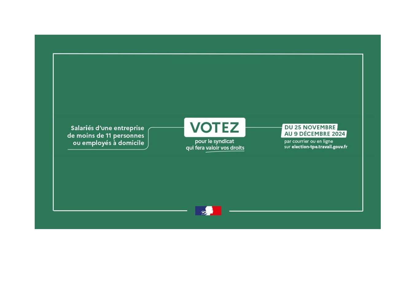𝗗𝘂 𝟮𝟱 𝗻𝗼𝘃𝗲𝗺𝗯𝗿𝗲 𝗮𝘂 𝟵 𝗱é𝗰𝗲𝗺𝗯𝗿𝗲 𝟮𝟬𝟮𝟰, les salariés des très petites entreprises (moins de 11 salariés) choisiront les syndicats qui vont les représenter…